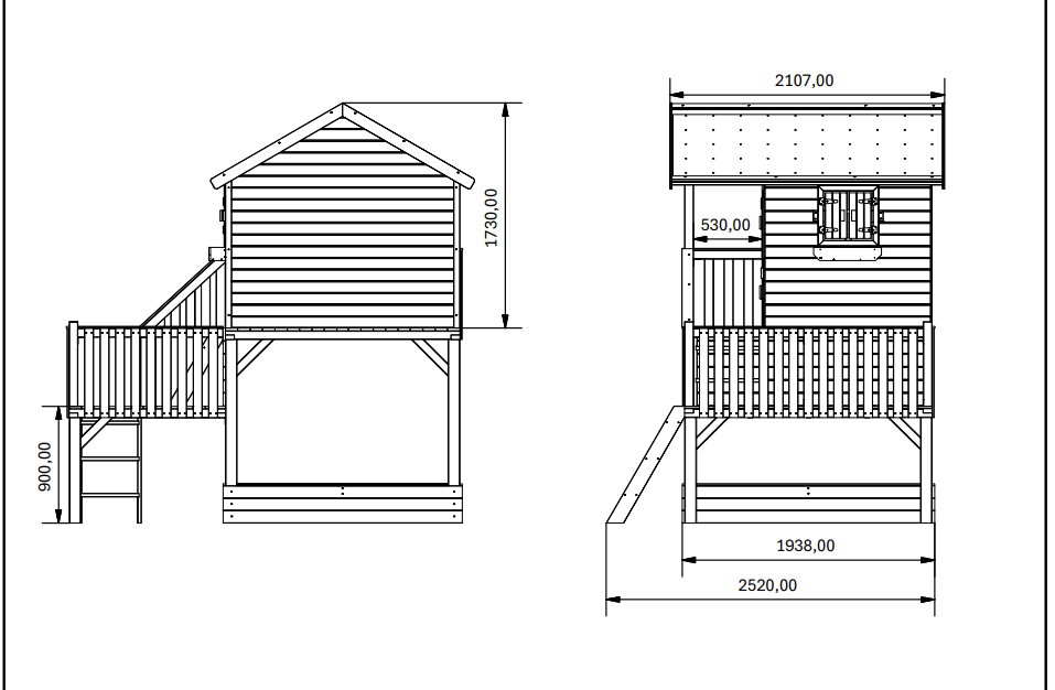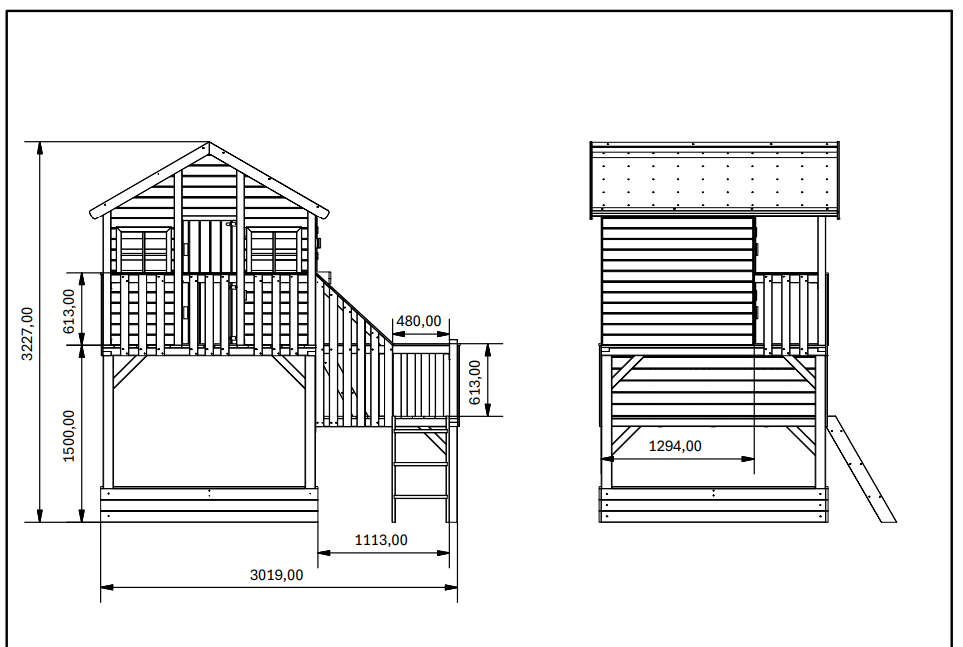 Ruim speelhuis met balkon en extra zijplatform
