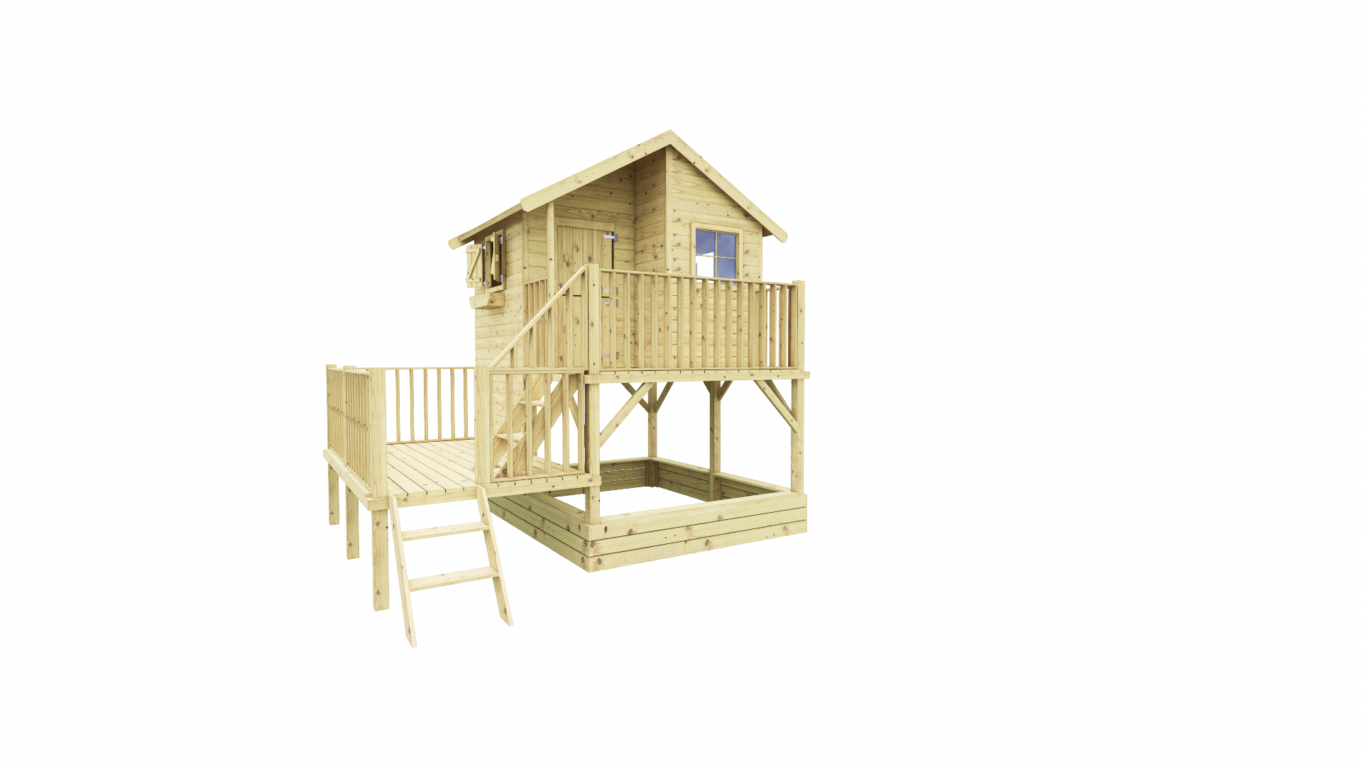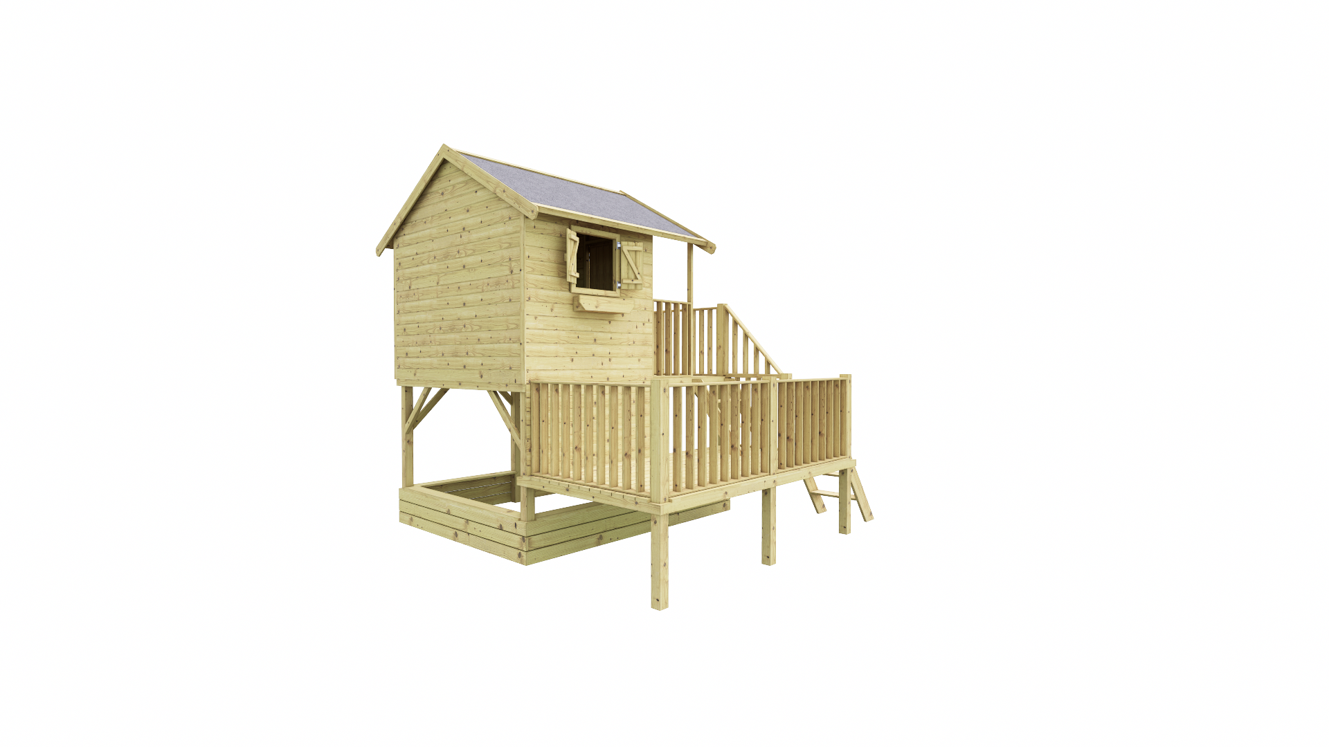 Gemaakt van stevig geïmpregneerd hout, gaat dit speelhuis jarenlang mee en is het bestand tegen weer en wind. Dankzij het veilige trapje klimmen de kinderen eenvoudig zelf naar boven, waar ze hun eigen plekje hebben om te ontdekken en plezier te maken.