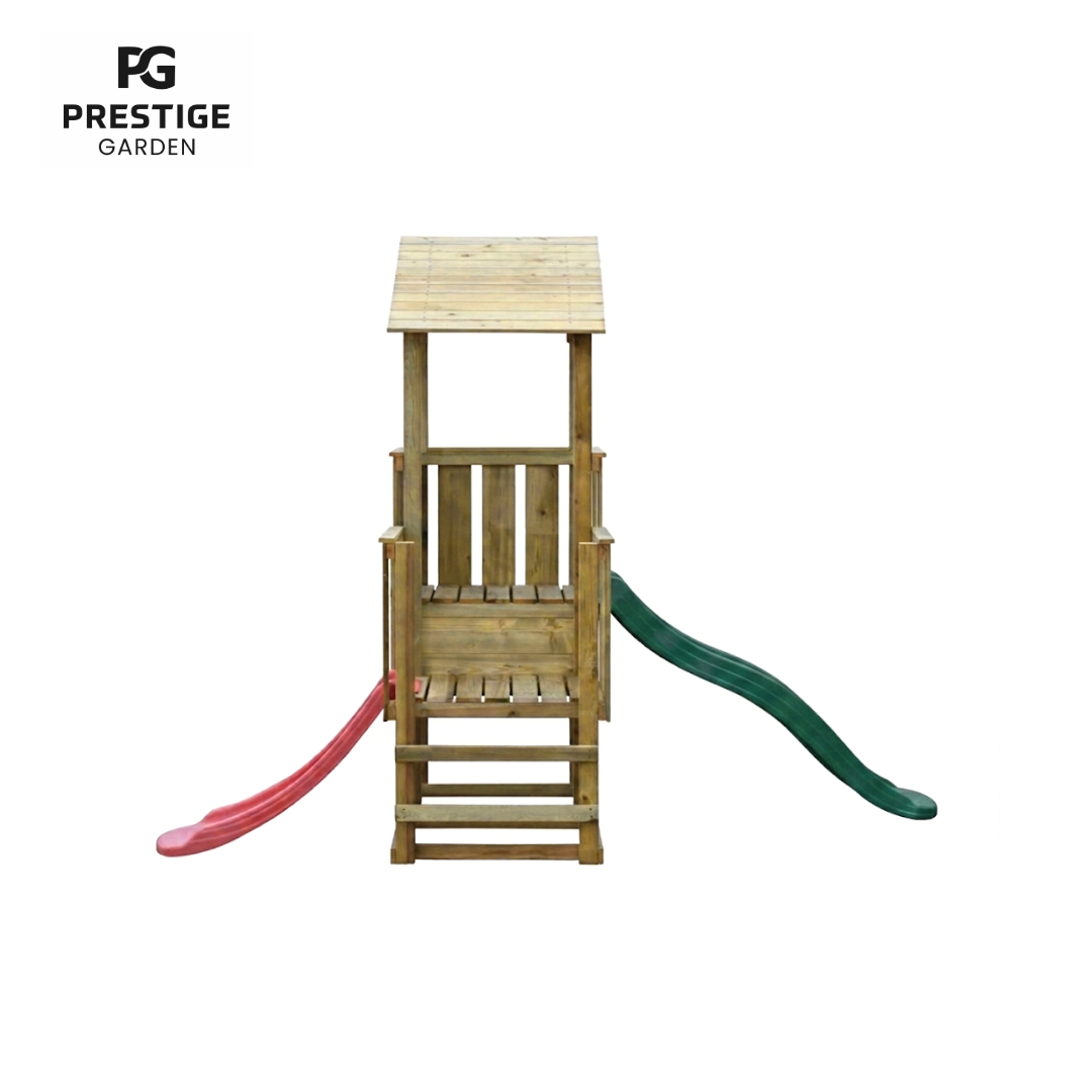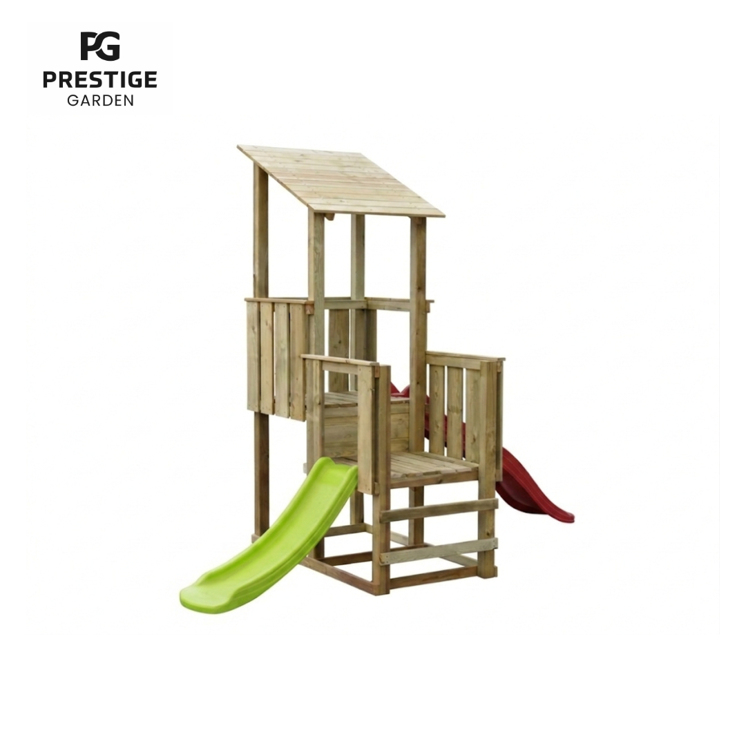 Deze speeltoren wordt inclusief twee glijbanen geleverd.
