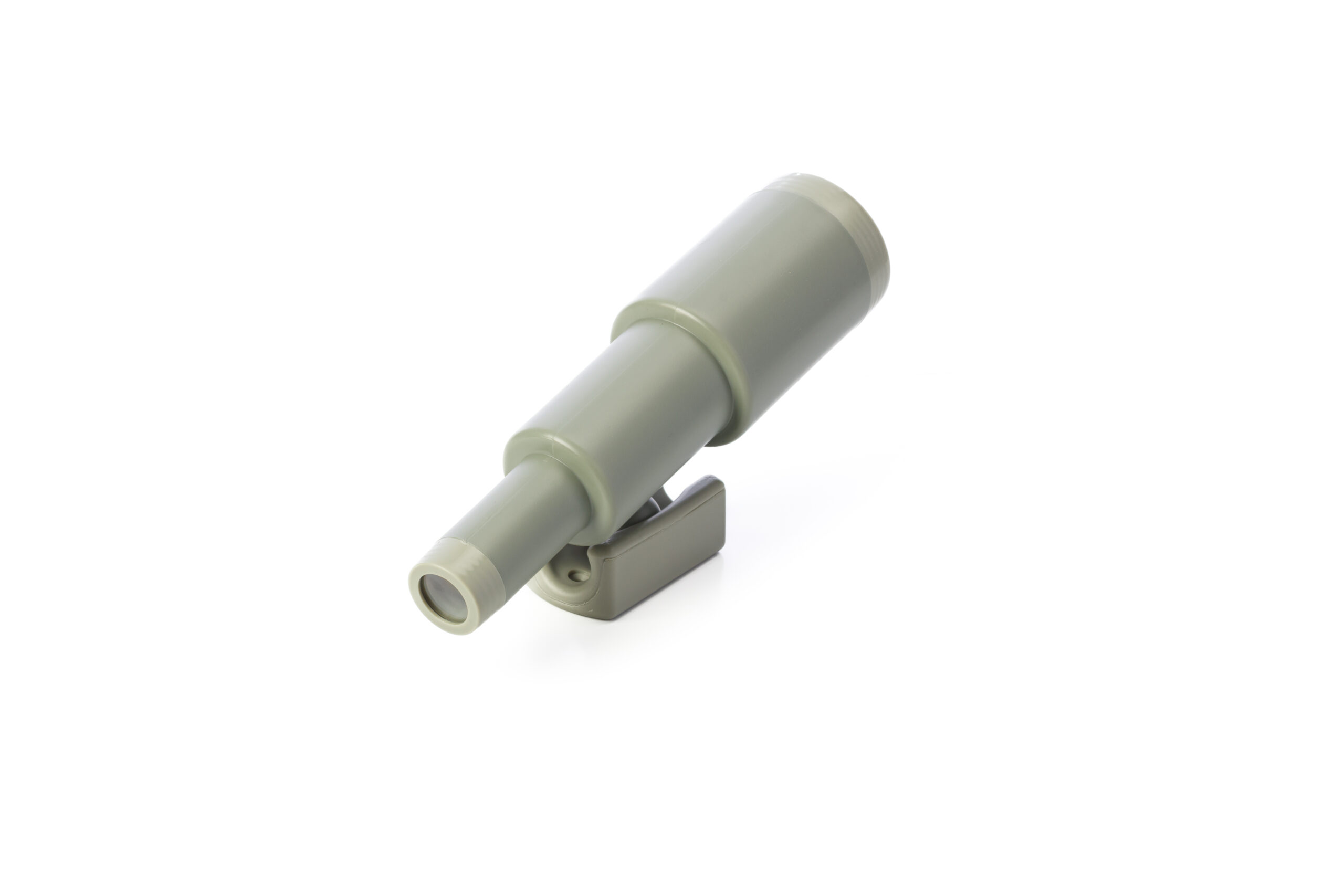 De telescoop draait in alle richtingen en vergroot niet, maar dat maakt het speuren er niet minder leuk om.